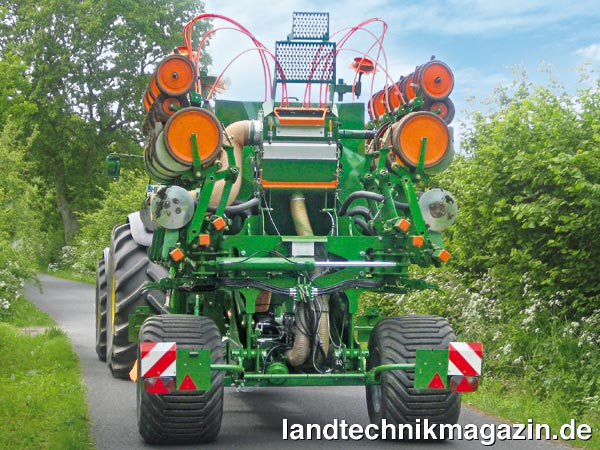 Die Ein- und Verstellung der Saatgutmenge erfolgt über den Bordcomputer AMATRON+, der die elektrisch angetriebene Vereinzelungstrommel steuert – laut Hersteller ein hochwertiger, einfach aufgebauter und dadurch zugleich sehr zuverlässiger Antrieb. Mit der EDX 6000-T können Mais und Sonnenblumen in Reihenabständen von 70 cm, 75 cm und 80 cm ausgesät werden. Lieferbar ist die neue Amazone Einzelkornsämaschine ab 2010.