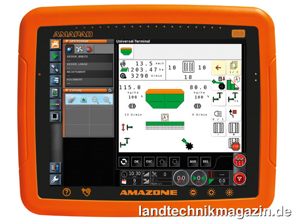 Die Grundlagendokumentation der Arbeit erfolgt dank ISOBUS direkt auf der Maschine. Die Arbeitsdaten werden hierfür im ISO-XML-Format zur weiteren Verarbeitung mit einem Farmmanagement-Informationssystem bereitgestellt. Bedient werden kann die Primera DMC Zinkenschar-Sämaschine über die Amazone ISOBUS-Terminals AMATRON 3, CCI 100 oder AMAPAD. Aber auch jedes andere ISOBUS-fähige Terminal kann nach Herstellerangaben für die Maschinenbedienung genutzt werden.