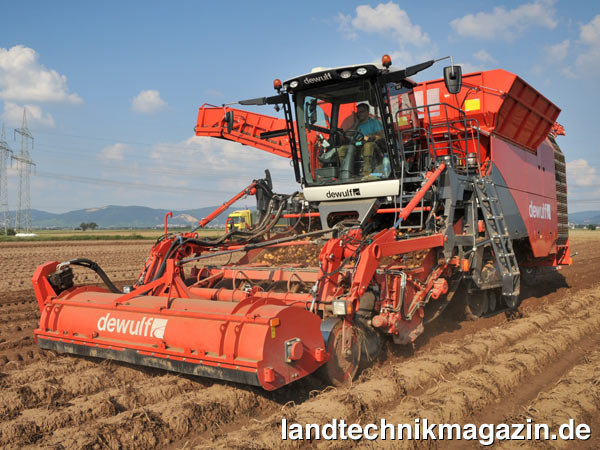 Die zweireihige, gezogene Seitenrodemaschine Dewulf RA2060 mit Reinigungseinheit und Bunker besticht nach Herstellerangaben vor allem durch ihre Kapazität. Die Reinigung erfolgt mithilfe von 3 Siebketten, einem unteren Igelband, einem Reinigungsmodul und dem oberen Igelband. Der R2060 hat laut Dewulf das größte Reifenmaß seiner Klasse und sorgt für einen minimalen Bodendruck. Der Roder ist serienmäßig mit einem Bunker mit einem Inhalt von 11 m³ ausgestattet, der das Abladen während der Fahrt ermöglicht.