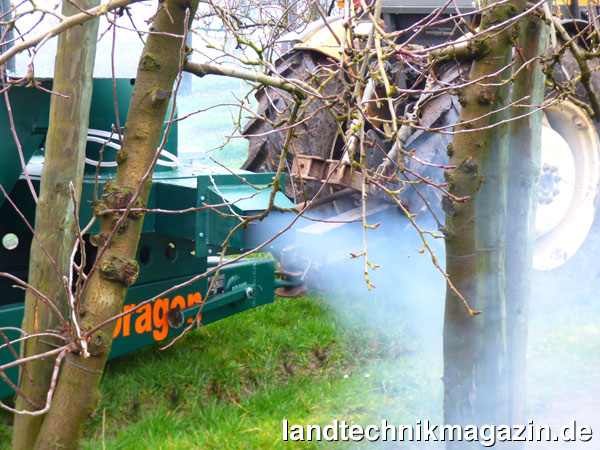 Der Fog-Dragon deckt nach Herstellerangaben eine Arbeitsbreite von 60 m ab (30 m auf jeder Seite). Ein Fog-Dragon, der kontinuierlich in Schleifen durch die Plantage gezogen wird und alle 20 Minuten zum Ausgangspunkt zurückfährt, reicht nach Herstellerangaben aus, um 10 ha zu schützen.
