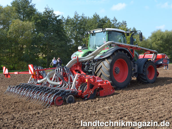 Wie auch die starre Version ist die neue Horsch Express 4 KR mit TurboDisc Doppelscheibenscharen in Kombination mit der Kreiselegge Kredo ausgestattet und kann wahlweise mit einer Trapezringwalze oder einem Zahnpacker bestellt werden. Auch beim neuen Modell sollen 14 Kreisel auch bei schwierigsten Bedingungen für eine perfekte Saatbettbereitung sorgen. Horsch zufolge beträgt die Arbeitsgeschwindigkeit bis zu 13 km/h. Durch die Transportbreite von maximal 3 m lässt sich die neue Express 4 KR flexibel einsetzen – das Einstellen von Arbeitstiefe und Saattiefe ist nach Herstellerangaben auch bei der klappbaren Version einfach und schnell realisierbar.