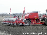 Durch den serienmäßigen elektrischen Antrieb der Säaggregate, wird die Maschine, so Becker, auch den neuesten und modernsten Anforderungen gerecht. Der Elektroantrieb ermöglicht die Veränderung der Aussaatmenge während der Feldarbeit direkt vom Schleppersitz aus. Des weiteren können einzelne Säaggregate vom Schleppersitz aus abgeschaltet werden. Weiterhin ermöglicht der Elektroantrieb das einfache und schnelle Anlegen von Fahrgassen für die unterschiedlichsten Spritz- und Spurbreiten. Die GPS gesteuerte Section Controll ermöglicht saatgutsparendes ausdrillen von unregelmäßig begrenzten Flächen durch automatisches Abschalten einzelner Säaggregate, z.B. beim ausdrillen eines Keils.