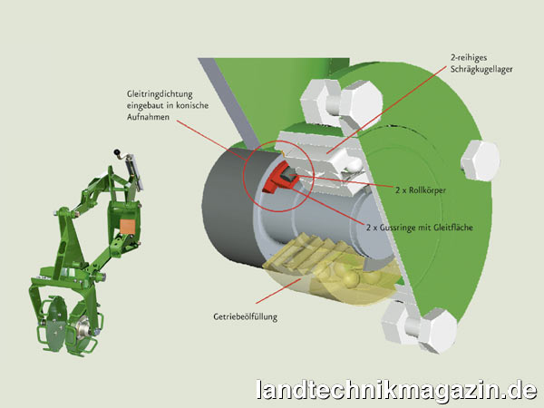 Neu ist auch die verbesserte Lagerung der Reflex-Scheiben. Die speziellen Gleitringdichtungen müssen nicht mehr geschmiert werden und haben sich, so Amazone, bereits bei der Kompaktscheibenegge Catros bewährt.