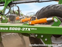 Amazone empfiehlt die neuen Zinken für anspruchsvolle Böden, auf denen während der Arbeit regelmäßig Überlasten auftreten. Zur Anpassung auf die jeweiligen Verhältnisse kann die Auslösekraft bei den neuen C-Mix-Ultra-Zinken stufenlos auf bis zu 800 kg eingestellt werden. Zudem bietet die neue Amazone Überlastsicherung laut Hersteller hohe Aushebewege der einzelnen Zinken. Das und die einstellbare Auslösekraft soll eine gleichmäßig Arbeitstiefe von bis zu 30 cm sichern. Die Einstellung des Systems erfolgt vorne an der Deichsel. Ein Druckmanometer erlaubt dabei die Kontrolle auch während des Einsatzes vom Traktorsitz aus. Die Ultra-Überlastsicherung besteht aus an den Zinken angebrachten Hydraulikzylindern und zentralen Hydraulikspeichern. Diese Konstruktion soll einen besonderen Schutz des Grubbers und einen geringeren Verschleiß der Überlastsicherung bei vielen Auslöseprozessen bewirken, da sie laut Amazone nach dem Auslösen für ein sehr gedämpftes Rückschlagverhalten des C-Mix-Ultra-Zinkens sorgt. Die Anzahl der erwähnten Druckspeicher ist der jeweiligen Zinkenzahl angepasst, um bei gleichzeitigem Auslösen mehrerer Überlastsicherungen für einen geringen Druckunterschied im System zu sorgen.