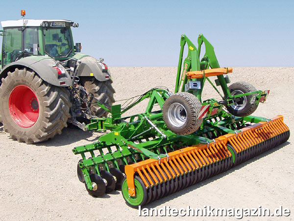 Diese Konzeption bietet laut Amazone wesentliche Vorteile: Im Vergleich zu angebauten Kompaktscheibeneggen reichen kleinere Traktoren als Zugschlepper, weil der begrenzende Faktor „Hubkraftvermögen des Traktors“ entfällt. Als weiteres Plus erweist sich die größere Einsatz-Flexibilität. Denn in Abhängigkeit von den jeweiligen Standortanforderungen können die Maschinen wahlweise mit Stütz-, Zahnpacker-, Tandem- oder Keilringwalzen ausgerüstet werden.