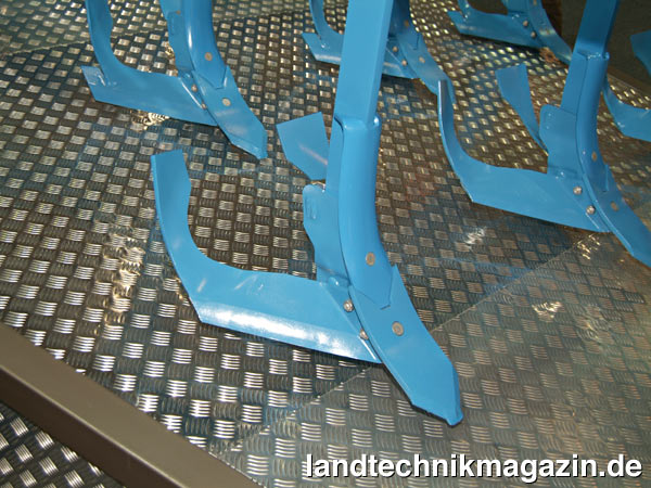 Möglich machen dies die neu entwickelten, 47 cm breiten TriMix-Schare, die den Boden ganzflächig schneiden. Gebogene Leitbleche an den Flügelscharen sollen für eine deutlich intensivere Mischarbeit als bei allen bisher angebotenen Scharformen sorgen. Am ersten Balken sind die Leitbleche ganz außen auf den Flügelscharen platziert und am zweiten Balken etwas nach innen versetzt. Damit glänzt der Kristall laut Lemken mit der Leichtigkeit und Leichtzügigkeit eines zweibalkigen Grubbers mit sieben Zinken, verteilt aber zugleich das Stroh so gleichmäßig und vermischt es so intensiv mit dem Boden, wie es bisher nur viel längeren Grubbern mit erheblich mehr Zinken vorbehalten war.