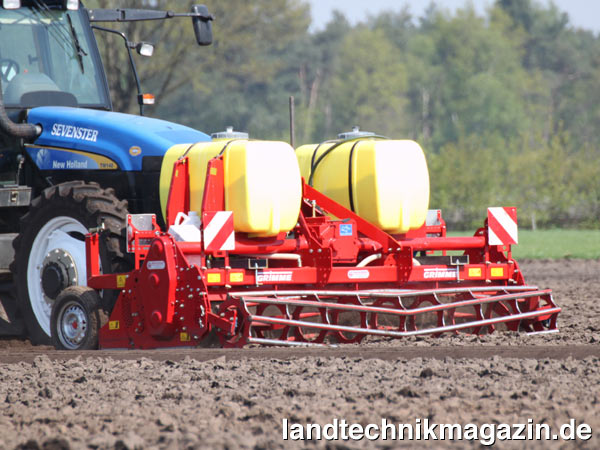 In schweren und klutenreichen Bedingungen ist eine Bearbeitung mit entsprechenden Fräsen unabdingbar. Für dieses Einsatzsgebiet hat Grimme die nach Herstellerangaben sehr robuste Bodenfräse GR 300 entwickelt. 110 Zinken sowie eine hohe Rotordrehzahl sollen für eine intensive und breitflächige Bearbeitung sorgen, so dass ein für das Legen der Kartoffeln ideales Bodenbild entsteht. Das laut Grimme sehr robuste und langlebige mit 3 Gängen ausgestattete Getriebe ist für Traktorenleistungen bis 250 PS ausgelegt. Die Bodenfräse ist mit einem gefederten Gehäuse ausgestattet, so dass evtl. anhaftende Erde nach Herstellerangaben durch die Vibration abfällt und das Gehäuse sich somit selbst reinigt.