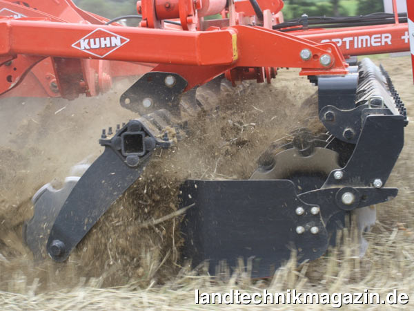 Durch einen neuen Anstellwinkel, die längeren Tragarme der Scheiben und damit mehr Freiraum wird der Einsatz bei hohem Anteil an Ernterückständen laut Kuhn erleichtert. Die dauergeschmierten Scheibennaben mit doppelten Schrägkugellagern sind nach Herstellerangaben völlig wartungsfrei. Das spart Zeit und verhindert das Eindringen von Fremdkörpern bei einem Scheibenaustausch.
