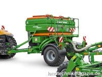 Das Volumen des neuen XTender-T beziffert Amazone mit 4.200 l. Serienmäßig ist der Behälter nicht geteilt, kann aber optional mit einer 50/50-Zweiteilung ausgestattet werden, um Dünger und Saatgut oder verschiedene Saatgut-Sorten zu trennen. Die im Heck befindlichen beiden elektrisch angetriebenen Dosierer sind nach Herstellerangaben auf Ausbringmengen von 2 bis 400 kg/ha ausgelegt. Der XTender-T beherrscht laut Amazone ISOBUS und kann dementsprechend per ISOBUS-Terminal bedient werden, womit auch eine teilflächenspezifische Düngergabe ermöglicht wird. Als Wunschausstattung kann die Steuerung auch mit dem aus der Sätechnik bekannten TwinTerminal 3.0 erfolgen, das Kalibrierung und Restmengenentleerung erleichtern soll.
