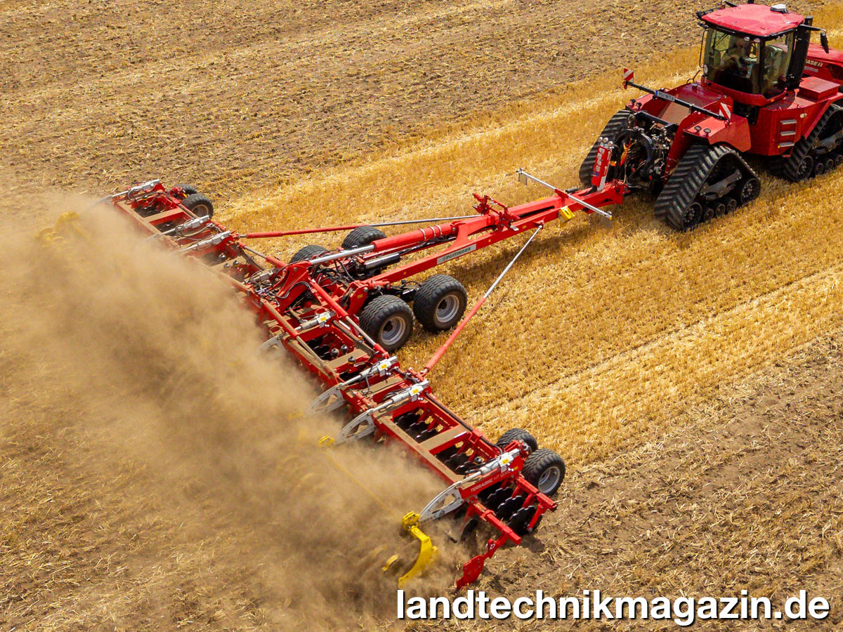 Der Auflagedruck der Arbeitsfelder lässt sich hydraulisch paarweise an die jeweiligen Bodenverhältnisse anpassen. Zusammen mit der exakten Tiefenführung über groß dimensionierte Doppeltasträder, dem zentralen Transportfahrwerk und dem nachlaufenden Walzensystem mit integrierter Dämpfung werde eine gleichmäßige Arbeitstiefe über die gesamte Maschinenbreite erzielt.