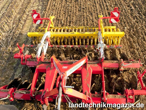 Zur Bedienung der Tiefeneinstellung muss nur mehr das hydraulische Steuergerät am Schlepper betätigt werden – serienmäßig. Es ist kein Absteigen mehr notwendig. Auch die Scheibenlagerung bietet, so Pöttinger, höchsten Komfort durch absolute Wartungsfreiheit. Die Lagerbolzen am Scheibenträger sind verschraubt und ein großes, zweireihiges, dauergeschmiertes Schrägkugellager mit Kassettendichtung (sechs Dichtstellen) soll für besten Schutz sorgen. Zusätzlich ist die Kassettendichtung mechanisch mit einem Blechtopf geschützt – zum Schutz vor langphasigen Ernterückständen oder am Feld liegen gebliebenem Bindegarn.