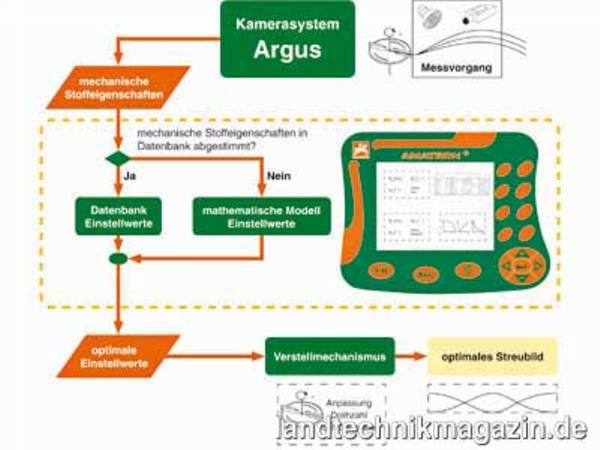 Das am Zentrifugaldüngerstreuer installierte Kamerasystem Argus ermittelt während des Streuvorganges bestimmte mechanische Stoffeigenschaften des Düngers, die sich unmittelbar auf die Querverteilung auswirken. Mit der im Bordcomputer AMATRON+ gespeicherten Datenbank erfolgt eine Auswertung und die exakten Einstellwerte für die gewünschte Querverteilung lassen sich somit ermitteln. Die Einstellung der Querverteilung kann automatisiert erfolgen.