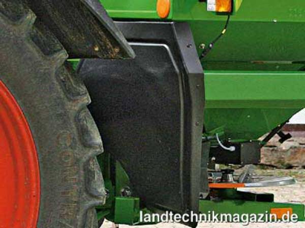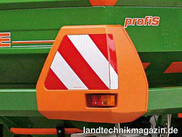 Für mehr Sicherheit stattet Amazone den ZA-M profiS mit dem neuen Safety-Set aus. Amazone hat dabei die strengen Sicherheitsanforderungen, wie deutliche Erkennbarkeit im Straßenverkehr, in modernes Design integriert: Großflächige Warntafeln nach hinten und zur Seite sowie die eingepasste Beleuchtungsanlage sorgen für mehr Aufmerksamkeit, der umlaufende Schutzbügel erfüllt die Unfallverhütungsvorschriften und Schmutzfänger verhindern die Verunreinigung des Streusystems. Zudem erleichtert eine integrierte Leiter die Sicht in den Behälter zur besseren Kontrolle und Reinigung.