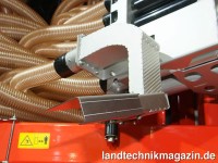 Die Ausbringung des Düngers über die Verteilerdüsen ist die Grundlage für das neue FreeLane-System. Zwei einfach justierbare Leitvorrichtungen an den AGT-Verteilerdüsen jeweils auf der rechten und linken Seite der beiden Fahrspuren ermöglichen es, dass kein Dünger in die Fahrspuren gestreut wird. Dass der Streuschleier der mit den Leitblechen ausgerüsteten Düsen dabei schmaler wird und so weniger Dünger benötigt wird, berücksichtigt das System über spezielle Fahrgassen-Nockenräder in den entsprechenden Teilbreiten, die die ausdosierte Düngermenge anpassen. Eine flexible Anpassung des FreeLane-Systems an unterschiedliche Spur- und Reifenbreiten ist laut Rauch einfach und schnell möglich.