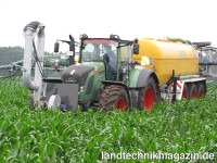 Der Profi-FANT kann mit Pflegereifen ausgestattet auch in wachsenden Beständen von Reihenkulturen (Mais etc.) die Gülle ausbringen. Durch seine elektro-hydraulische Lenkung soll der Anhänger dabei fast exakt der Traktor-Spur folgen. Zusammen mit Schleppschlauchverteilern bis 36 m Arbeitsbreite sind, so Zunhammer, enorme Flächenleistungen mit wenigen Fahrspuren möglich. Insbesondere bei Verkürzung der Ausbringzeit durch eine neue Düngeverordnung wird das künftig noch wichtiger.
