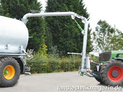Die Ansaughöhe des neuen Gülle-Ansaugarms gibt Joskin mit bis zu 4,5 m an, die Länge des beweglichen zweiten Teilstückes mit 3 m. Die zwei Teile des Ansaugarms sind gelenkig mit einander verbunden, so dass über einen doppeltwirkenden Hydraulikzylinder die Neigung des beweglichen Teilstückes (max. 100 Grad) eingestellt werden kann. Die Steuerung des Zylinders geschieht direkt über ein doppeltwikendes Steuergerät des Schleppers, während die weiteren Funktionen des Ansaugarmes – wie beispielsweise Turbo oder Schieber – laut Joskin üblicherweise am Steuerblock des Ausbringgüllefasses angeschlossen werden, wodurch die Steuerungsvorgänge während der Befüllphase perfekt synchronisiert werden können.