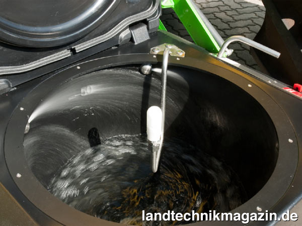 Die neue Dammann Einspülschleuse verfügt innen über eine runde Bauform zur besseren Reinigung des Innenraums sowie 4 waagerecht positionierte Düsen zum Ausspritzen und Reinigen des Innenraums. Die schneckenartige Flüssigkeitsbewegung in der Einspülschleuse, soll für schnelleres Absaugen von schwerauflösenden Mitteln wie Pulver und Granulat sorgen. Über ein ergonomisch zentrales Bedienfeld lassen sich die Spülung des Innenraums und die Spülung für die Entleerung des Kanisters schalten. Hinzu kommt die Schaltung für die Stoßdüsen zur Vermeidung von Klutenbildung und die Bedienung des Dosierhahns zur Absaugung der Mittel. In der Einspülschleuse ist zudem ein Staufach für Handschuhe, Messbecher und Reinigungspistole integriert.