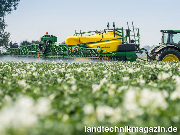 Die neuen John Deere Anhängefeldspritzen M900i und R900i bieten eine Düsensteuerung aus der Kabine heraus, wodurch der Fahrer während der Arbeit die Spritzdüsen wechseln kann.