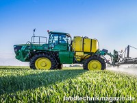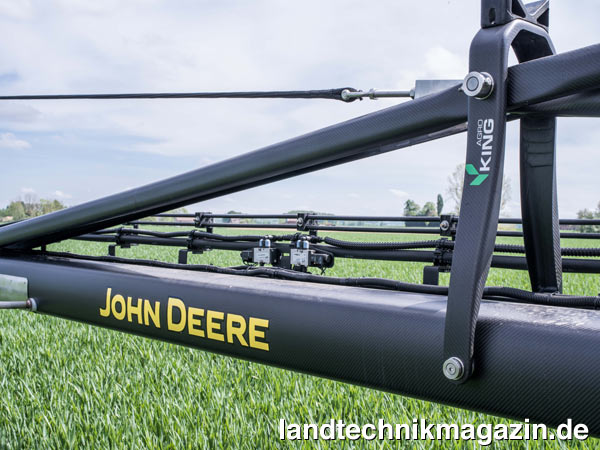 Gesteuert werden kann das neue Carbonfaser-Spritzgestänge der R4050i optional mit der automatischen Gestängeführung BoomTrac Pro, die mit drei oder fünf Sensoren erhältlich ist, und komplett über den Multifunktionshebel der Feldspritze wird. John Deere betont, BoomTrac Pro für große Arbeitsbreiten entwickelt zu haben und beim Spritzen eine höhere Flächenleistung bei gleichzeitig reduzierter Abdrift zu bieten. BoomTrac Pro ist übrigens nicht nur für die neue R4050i erhältlich, sondern kann auch für die Anhängefeldspritzen R900i und M900 als Wunschausstattung bestellt werden.
