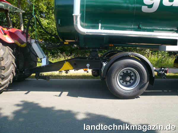 Die Tankanhänger gibt es in drei Modellen mit 25.500, 28.000 und 30.000 l Behältervolumen. Sie können als Vakuumtankwagen mit Kompressor oder als Pumptankwagen mit Drehkolbenpumpe geliefert werden. Ausgestattet sind die Transportanhänger mit einem Tandem Boogie-Aggregat von BPW sowie einer lufgefederten BPW-Achse am Vorderwagen. Die hintere Achse ist nachlaufgelenkt. Die Anhängung an den Schlepper erfolgt über eine K80 mit 3 t Stützlast. Somit ist höchster Fahrkomfort geboten. Das zulässige Gesamtgewicht für diese Lösung beträgt 33 t, die TÜV-Abnahme erfolgt für 40 km/h. Der Behälter ist verzinkt, kann optional aber auch KTL-beschichtet geliefert werden, um eine höhere Korrosionsbeständigkeit zu erreichen. Aluminium-Schlauchwannen links und rechts können gegen Aufpreis gewählt werden.