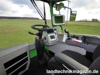 Die Ausstattung des Selbstfahrers DT500 wird um eine weitere Option ergänzt, nämlich mit Allradlenkung, um genau zu sein mit HZL (Hinterradzusatzlenkung). Diese Kombination soll die Vorteile des bewährten mechanischen Fahrantriebs mit einer verbesserten Wendigkeit des Fahrzeugs verbinden. Wie das Fahrgestell dieses Fahrzeugs kommt auch die hydraulisch gelenkte Hinterachse aus dem Hause Mercedes-Benz. Für den Anwender bedeutet diese Zusatzausstattung laut Dammann einen kleineren Wendekreis und weniger Verluste durch Fahrspuren. Darüber hinaus kann der Fahrer bei Hanglagen an der Hinterachse zusätzlich gegenlenken, um die Spur besser zu halten.