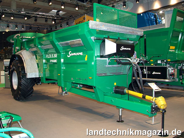 Die bestehende Dungstreuer-Serie FLEX wird durch das neue Modell FLEX II 20E ergänzt. Im Unterschied zum bestehenden 20-m³-FLEX verfügt das neue Modell über nur eine Achse und ist optional mit neuen Dosierungssystemen, einer neuen Wiegefunktion sowie einer größeren Bereifung erhältlich. Die größeren Reifen versprechen mehr Bodenschonung.