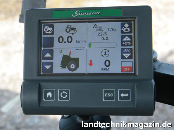 Die beiden neuen Steuerungssysteme für Streuer, SpreadMaster 6500 und SpreadMaster 8500, erlauben dem Anwender laut Samson das Material zu wiegen und die Streuung zu dosieren. Während des Streuens können Daten gesammelt werden, die als Dokumentation gegenüber Behörden oder Kunden verwendet werden können. Der SpreadMaster 6500 steuert die Geschwindigkeit der Bodenkette zur genaueren Dosierung des Materials proportional zur Fahrgeschwindigkeit des Streuers und erfasst die Streuzeit, das theoretische Gewicht und die Fläche. Wahlweise kann der SpreadMaster 6500 um eine volumetrische Dosierung erweitert werden. Der ISOBUS-kompatible SpreadMaster 8500 ist umfangreicher und kann laut Samson jede Art von Wägung durchführen: Volumetrisch, statisch oder dynamisch. Außerdem lassen sich Verteilungskarten laden auf deren Basis dosiert wird. Nach der Ausbringung werden Karten mit der tatsächlichen, exakten Dosierung erstellt.