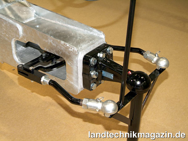 Aktiviert wird das Schwenken durch den kompletten, automatischen Ausklappvorgang der Applikationstechnik. Erst wenn der Klappungsvorgang vollständig abgeschlossen ist, kann das Schwenken des Hubwerkes durch die Hydraulikzylinder erfolgen. Das Ansteuern bzw. Verschwenken kann wahlweise manuell per Tasten im Display des Bedienterminals SmartControl Profi oder automatisch zur jeweiligen Schrägstellung des Hundeganges erfolgen. Wird der Hundegang deaktiviert, wird das Anbaugerät automatisch in die Mittelstellung zurückgeschwenkt. Die maximale Anhängelast des Hubwerkes beträgt laut Kotte 2,5 t.