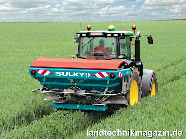 Die neue, serienmäßige Abdeckplane mit Aufrollmechanismus für die Sulky X40+ und X50+ kann hydraulisch von der Traktorkabine aus betätigt werden. Sulky Burel betont, dass diese Fernbetätigung das Befüllen des Düngertrichters vor allem dann erleichtert, wenn wenige Arbeitskräfte auf dem Hof zur Verfügung stehen.