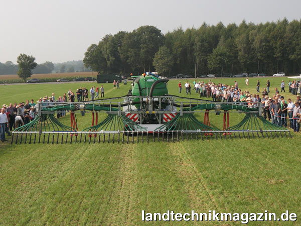Als Nach- respektive Umrüstoption für seine Schleppschlauchgestänge bietet Vogelsang jetzt das neue Schleppschuhsystem BaseRunner an. Laut Vogelsang ist das auch bei großen Gestängen möglich, so dass die Schleppschuhtechnik erstmals auch bei großen Arbeitsbreiten eingesetzt werden kann. Zur Umrüstung eines Schleppschlauchverteilers werden bei diesem die Endstücke entfernt und stattdessen die BaseRunner Schleppschuhmodule montiert. Die BaseRunner Schleppschuhmodule verfügen über einen nach Herstellerangaben dauerhaft flexiblen Schaft, der für eine optimale Bodenanpassung sorgen und so auch in hügeligem Gelände eine gleichmäßige bodennahe Ausbringung sichern soll. Darüber hinaus verfügen die BaseRunner Schleppschuhe über eine integrierte Kufe, die den Boden etwas anschlitzt, so dass die Gülle laut Vogelsang sicher unter dem Gras- oder wachsenden Getreidebestand abgelegt wird.