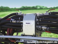 Im BlackBird kommt der weiterentwickelte Vogelsang-Exaktverteiler ExaCut ECQ zum Einsatz. Er ist mittig im Seitenarm und damit optimal für eine exakte und gleichmäßige Gülleverteilung positioniert. Großzügige Querschnitte und Strömungsleitbleche sorgen nach Herstellerangaben für ein ruhiges Fließverhalten und eine hohe Verteilgenauigkeit der Gülle. Zugunsten einer schnelleren und einfacheren Wartung des ExaCut ECQ hat Vogelsang auch sein Servicekonzept angepasst und eine große Wartungsklappe für den direkten Zugriff auf alle innenliegenden Teile eingefügt. Für Servicearbeiten müssen daher weder der Exaktverteiler noch der schwere Deckel mit den angeschlossenen Abgangsschläuchen und Zuführleitungen demontiert werden. So lässt sich der ExaCut ECQ dank des QuickService-Konzepts in nur wenigen Minuten warten. Reduziert hat sich laut Vogelsang außerdem auch der Leistungsbedarf – um bis zu 50 %. Das ermöglichen das neue Rotordesign und die geringeren Drehzahlen. Da die Schneidmesser durch minimierte Drehzahl und Verteilerinnendruck weniger beansprucht werden, verlängert sich die Standzeit nach Unternehmensangaben um bis zu 50 %.
