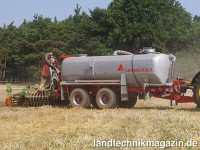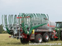 Wie bei Annaburger üblich, wird der Tank auch beim neuen ProfiTanker Plus HTS 24.28 aus GfK (Glasfaser verstärkter Kunststoff) im bewährten Wickelverfahren hergestellt. Anders als bisher besitzt der Behälter jedoch keine zylindrische Form, sondern einen herzförmigen Querschnitt. Lokale Verstärkungen des GfK-Laminates und die Einbeziehung der ebenfalls aus GfK gefertigten Schwallwände in die Tragwerksstruktur sorgen laut Annaburger für eine hohe Stabilität des dennoch leichten Tankes, der so im neuen ProfiTanker Plus HTS 24.28 eine tragende Funktion übernehmen kann. Entsprechend leichter konnte der Fahrzeugrahmen mit offen gekannteten Längsprofilen gestaltet werden. Lokale Verstärkungen verhelfen auch dem Rahmen zur nötigen Stabilität und sorgen zudem für eine optimale Krafteinleitung in den Tank. Insgesamt konnte Annaburger durch diese neuartige Konstruktion nach eigenen Angaben 1.000 kg Gewicht einsparen. Das zulässige Gesamtgewicht beziffert Annaburger für den neuen ProfiTanker Plus HTS 24.28 übrigens mit 24 t, die zulässige Stützlast der serienmäßigen Untenanhängung mit 4 t. Beide Werte sollten angesichts von 19.000 l Tankvolumen insbesondere bei angebauter Gülle-Applikationstechnik wie Schleppschlauchverteilern, Injektoren, etc. – die der ProfiTanker Plus HTS 24.28 heckseitig per Drei- oder Vierpunkthydraulik aufnimmt – für eine legale Straßenfahrt tunlichst im Auge behalten werden...