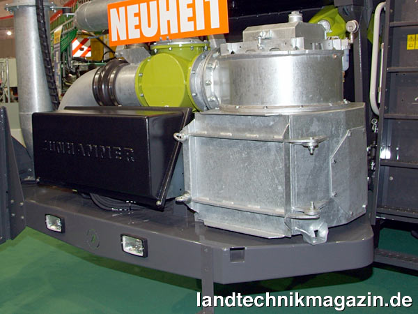 Alle Rohre und Aggregate im Güllestrom sind an die hohe Leistungsfähigkeit angepasst. So hat der Saugarm einen Durchmesser von NW 250. Die Drehkolbenpumpe fördert nach Herstellerangaben 9.000 Liter/Minute; damit ist der Tank laut Zunhammer in max. zwei Minuten befüllt. Und der Vorabscheider mit Faserzerkleinerer (RotaCut) in der Gülleleitung vor der Pumpe kann nach Herstellerangaben bis zu 12.000 Liter/Minute Durchfluss verkraften. Der komplett neue Saugarm ist jetzt um 180° schwenkbar und kann laut Zunhammer an Höhen von 1,8 bis 5,5 m andocken – auch über Gräben hinweg.