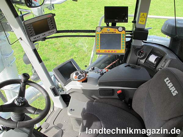 Der neue Zunhammer Selbstfahrer basiert auf dem neuen Claas Xerion Saddle-Trac 4000 mit Abgas- und verbrauchsoptimiertem Motor mit einer Nennleistung nach 97/68 EG von 308/418 kW/PS, einer Maximalleistung von 320/435 kW/PS und einem maximalen Drehmoment von 2100 Nm (Herstellerangaben Claas). Weitere Merkmale sind das stufenlose ZF-Eccom 5.0 Getriebe, 900er Breitreifen, Allradlenkung und 50 km/h Höchstgeschwindigkeit. Höchste Bodenschonung erreicht der Gülleselbstfahrer durch versetztes Fahren von Vorder- und Hinterachse im Hundegang – dank der seitlich schwenkbaren Heck-Hydraulik mit allen angebauten Geräten zur Gülleverteilung und/oder -einarbeitung. Seine Sparsamkeit soll der Gülletrac in der Praxis unter Beiweis stellen: rund 6 Liter Diesel pro Hektar mit Schleppschlauchverteiler mit 30 m Arbeitsbreite beziehungsweise rund 12 Liter Diesel pro Hektar mit einer 6 m breiten Zunidisc Scheibenegge gibt Zunhammer als Verbrauchswerte für den neuen Zuni-X-Trac an.