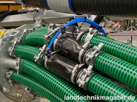 Nicht unerwähnt bleiben sollte, dass die neuen FLUSTO Ventile nur wenig Bauraum beanspruchen. Montiert werden sie in den Ablaufschläuchen des Verteilers direkt hinter den Verteilerköpfen. Laut Zunhammer können je nach Ausstattung des Ausbringfahrzeuges per ISOBUS 12 beziehungsweise 13 Teilbreiten geschaltet werden. Zur exakten Dosierung der Ausbringmenge bei Änderung der Teilbreiten via ISOBUS Section Control muss natürlich die Fördermenge entsprechend angepasst werden. Zunhammer empfiehlt den Einsatz der FLUSTO Absperrventile deshalb in Kombination mit einer stufenlos angetriebenen Pumpe, die eine besonders schnelle und genaue Mengenanpassung ermöglicht.