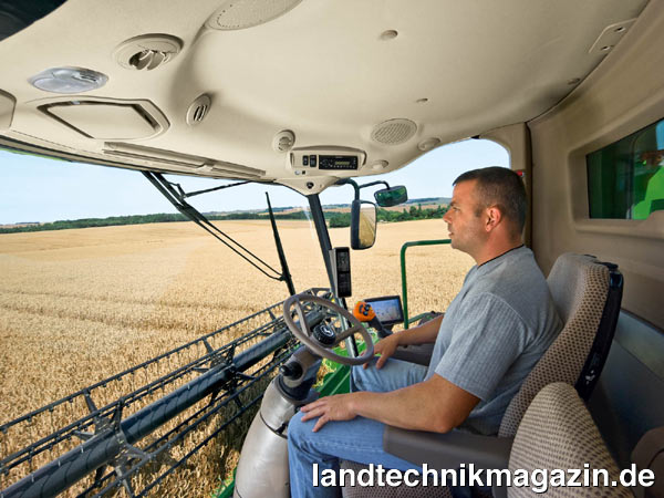 Für mehr Fahrkomfort sorgt auch bei der T-Serie die neue Premium Kabine mit den weiter oben beschriebenen Merkmalen, die John Deere unter der Bezeichnung Deluxe Kabine und mit etwas einfacherer Ausstattung auch bei den überarbeiteten Mähdreschern der W-Serie verwendet.
