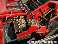 Zur Steigerung der Durchsatzleistung des 1. Trenngerätes wurde eine neue zweistufige Abstreifeinrichtung entwickelt und zum Patent angemeldet. In der ersten Stufe streift ein vorgelagerter, umlaufender Fingerkamm vor allem größere Knollen vom 1. Igelband ab. Durch den aktiv abstreifenden Fingerkamm sollen so schonend ca. 50 % der Knollen auf das Folgeband übergeben werden. Die noch auf dem 1. Igelband verbliebenen Knollen werden in der zweiten Stufe durch eine Kombination aus einer Abstreiferwalze mit einem darüber angeordneten, umlaufenden Fingerkamm von Kraut- sowie Erdresten getrennt und auf das Folgeband übergeben. Wegen der halbierten Kartoffelmenge vor der Abstreiferwalze ist das Igelband laut Hersteller in der Lage die verbliebenden Beimengen erheblich effektiver zu trennen. Der über der Walze angeordnete, umlaufende Fingerkamm soll seinerseits für eine schonende Weiterförderung der Knollen auf das Folgeband sorgen.