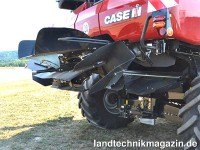Um bis zu 13,5 m breite Bandschneidwerke oder 18-reihige Maispflücker aufnehmen zu können, hat Case IH neben der serienmäßigen 5,2-t-Version eine optionale Schrägförderer-Version mit 6,1 t Hubkraft konzipiert, die über eine Steinfangmulde mit aktiver Abscheidung verfügt. Bei Maschinen ohne Raupenlaufwerk befindet sich unter dem Schrägförderer eine dritte Achse, um die Achslast-Anforderungen der StVO zu erfüllen. Zur besseren Führung des 13,5-m-Draper-Schneidwerkes lässt sich außerdem ab Werk eine Hangparallelverstellung bestellen. Die erhöhte Hubkraft wird übrigens durch HD-Schrägförderer-Zylinder erzielt.