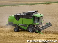 Die neuen Modelle 6060 HTS, 6090 HTS, 6065 HTS und 6095 HTS bieten neben einem elektrisch verstellbaren Dreschtrommelvariator (Drehzahlen von 420 bis 1.205 1/min) und einer synchronisierten Wendetrommel auch einen stufenlosen Haspelantrieb, der sich automatisch der Fahrgeschwindigkeit anpasst. Ein Luftkompressor mit einem 30 l-Tank und zwei neue Bereifungsvarianten (900/60 R32 und 600/55 R22,5 sowie 710/78 R34 und 540/95 R24) runden die Ausstattung ab. Bemerkenswert ist außerdem, so Deutz-Fahr, dass die 60er-Baureihe auch mit einer 800er Bereifung noch unter 3,50 m Außenbreite bleibt.