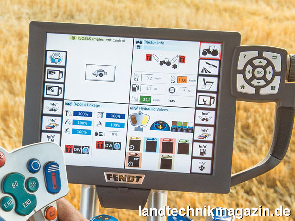 Die optionale, elektronische Ballenlängenverstellung, mit der die Ballenlänge vom Terminal aus geändert werden kann, wird für alle Quaderballenpressen angeboten. Fendt sieht hier den Vorteil vor allem für Lohnunternehmer, die bei verschiedenen Kunden pressen.
