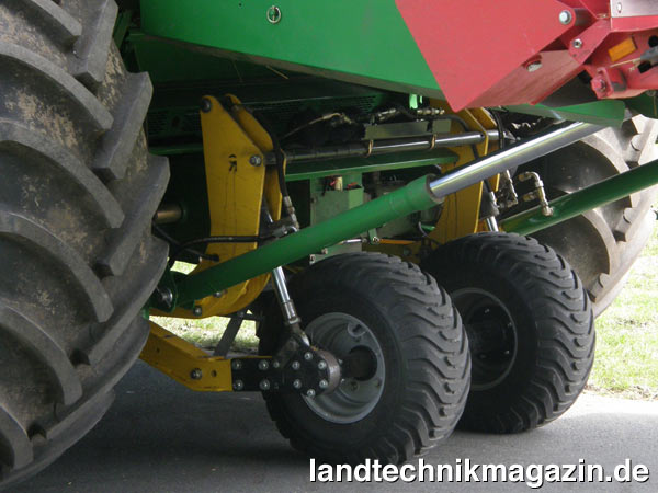 Wesentliches Merkmal des Vorderachsentlastungssystems ist nach Herstellerangaben neben der beschriebenen Neutralität der Achs- und Fahrgestellbelastung die zuverlässige und den Erntemaschineneinsatz nicht einschränkende Transportgeschwindigkeit.