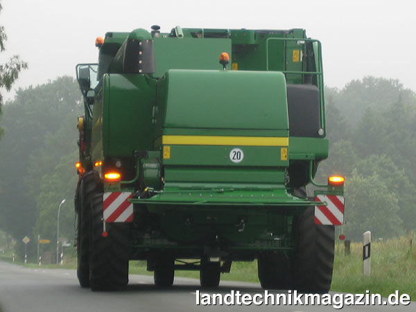 Der bewegliche Einzugskanal/Schrägförderer mit dem Erntevorsatz ist belastungsfrei mit dem Mähdrescher verbunden und kann jederzeit den Erfordernissen entsprechend angehoben oder abgesenkt werden. Zudem werden Aushubhöhe und Fahrbahnabstand des Erntevorsatzes wie auch das Sichtverhältnis entsprechend den Vorgaben der StVZO uneingeschränkt eingehalten.