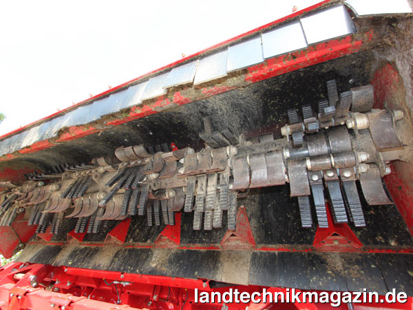 Mit dem neuen Grimme Multihäcksler in Kombination mit dem ebenfalls neuen Grimme Minimalnachköpfer können Rüben nach Herstellerangaben ertragsoptimiert und blattfrei geerntet werden. Diese Kombination kann laut Grimme im Gegensatz zu herkömmlichen Minimalköpfverfahren mit einem deutlich besseren Köpfergebnis aufwarten. Auch Rüben, die einen breitgestreuten Blattansatz haben und bisher im Minimalköpfverfahren oft noch Blattreste aufwiesen, werden durch die im Häcksler verbaute Multiwelle, einer Kombination aus Stahl- und Putzschlegeln, nach Herstellerangaben blattfrei geerntet. Durch die Vorentblätterung soll der Minimalnachköpfer ungehindert seiner Arbeit nachgehen können und so bei geringstmöglichen Masseverlusten einen definiert kleinen Köpfschnitt durchführen.