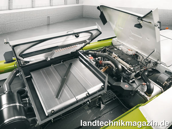 Alle neuen Claas LEXION 600 Mähdrescher arbeiten mit elektronisch geregelten Reihen-6-Zylinder-Motoren von Mercedes-Benz, die nach Herstellerangaben die Abgasnorm EU Stufe IV/Tier 4f erfüllen. In den Modellen LEXION 620, 630 und 650 kommt der OM 936 LA mit 7,7 l Hubraum, in den Modellen 660 und 670 der OM 470 LA mit 10,7 l Hubraum zum Einsatz. Die Maximalleistung nach ECE R 120 beziffert Claas mit 230/313 kW/PS für den LEXION 620, mit 260/354 kW/PS für den LEXION 630 sowie 650, mit 300/408 kW/PS für den LEXION 660 und mit 320/435 für den LEXION 670. Die Modelle 660 und 670 verfügen serienmäßig über DYNAMIC COOLING (das bis dato nur in den LEXION 700 Verwendung fand), das durch bedarfsgerechte Kühlleistung den Kraftstoffverbrauch drosseln soll. Claas betont, das System habe außerdem den Vorzug, durch die spezielle Luftführung in Kombination mit einer automatischen Staubabsaugung längere Reinigungsintervalle zu ermöglichen. Die spezielle Luftführung ist auch von außen deutlich erkennbar, da die neuen LEXION 660 und 670 über seitliche Luftschlitze (alias Kiemen) verfügen, durch die sich das Design stark von dem der Vorgänger unterscheidet. Mit den seitlichen Kiemen und der im Heck angeordneten Leiter entsprechen die Modelle LEXION 660 und 670 jetzt optisch nahezu den LEXION 700 Mähdreschern. Die restlichen Modelle verfügen stattdessen nach wie vor serienmäßig über eine planare Kühlerkorbabsaugung.