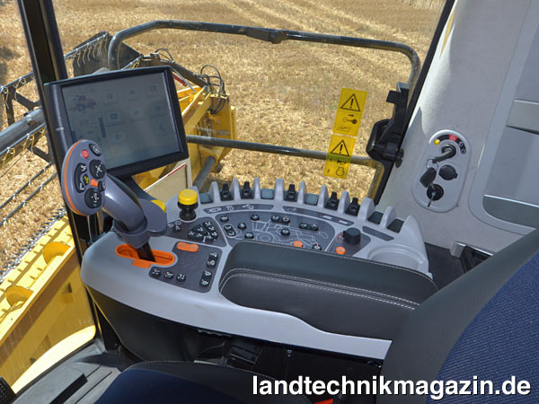 Komplett neu gestaltet wurde die Harvest Suite Ultra Kabine für die New Holland CR-Mähdrescher: Mit nach Herstellerangaben 3,7 m³ Innenraum, 6,3 m² Glasflächen und einem Geräuschpegel von nur 73 dB(A) lässt es sich auch an langen Erntetagen aushalten. Ein nach vorn abfallender Kabinenboden ermöglicht freie Sicht auf den Erntevorsatz. Der neue, intuitiv bedienbare, selbstrückstellende Multifunktionshebel CommandGrip erleichtert die Feinabstimmung der Arbeitsgeschwindigkeit und die neue Bedienkonsole wurde als „verlängerter Arm“ des Fahrers konzipiert. Der große Touchscreen-Farbmonitor IntelliView IV (26,4 cm), mit dem die wichtigsten Parameter kontrolliert werde, wurde auf Rollen montiert, um schnell in die aktuell beste Position bewegt werden zu können; optional lässt sich die Kabine auch mit einem zweiten IntelliView-Monitor ausstatten.
