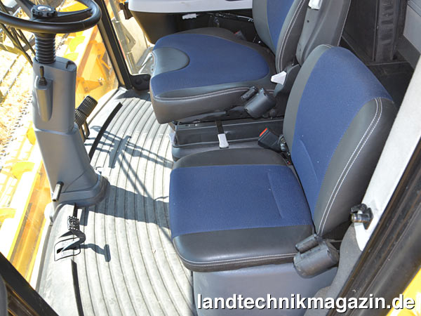Serienmäßig wird bei den neuen CR-Mähdreschern ein Komfort-Stoffsitz mit Heizung und aktiver Belüftung verbaut, wahlweise ist auch ein Luxus-Ledersitz mit größerem Höhenverstellweg und automatischer Gewichtsanpassung erhältlich.