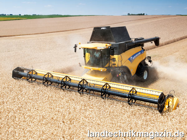 Das im New Holland Werk in Plock (Polen) gefertigte Schneidwerk basiert auf einer geschweißten Rahmenkonstruktion. Der Verstellbereich für das Messer in Längsrichtung beträgt 575 mm und kann elektrohydraulisch von der Kabine aus verstellt werden; so lassen sich Schneidwerk und Zuführung nach Firmenangaben optimal an alle Erntebedingungen anpassen. Mit den optional lieferbaren Rapstrennmessern ist es außerdem für den Rapsdrusch geeignet. Das Schneidwerk ist mit vier breiten Autofloat-Tastkufen zur automatischen Höhen- und Neigungsverstellung ausgestattet.