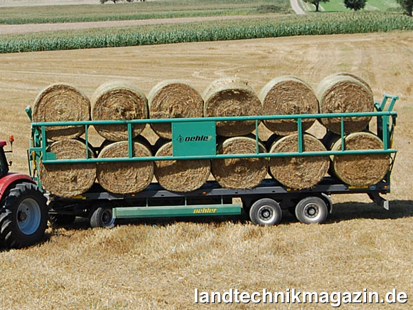 Der DDK 240 B mit einer Beladungsfläche von 9.70 x 2.40 Meter überzeugt, so Oehler, vor allem durch das große Ladevolumen. Der Ballenwagen kann nach Herstellerangaben bis zu 32 Quader- und Rundballen transportieren. Das Fahrgestell ist ein verwindungsarmer, geschlossener C-Rahmen, der für höchste Stabilität sorgen soll. Anzumerken ist noch, dass jeder Kunde ein von der DEKRA geprüftes Ladungssicherungszertifikat erhält.