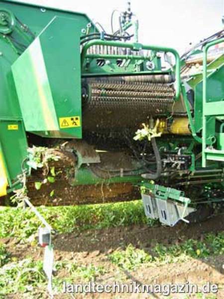 So wurde bei den neuen Modellen die Siebkanalbreite auf 80 Zentimeter erhöht. Der Scheibensechabstand ist jetzt von 58 bis 65 Zentimeter einstellbar. Zudem gibt es eine Reihe erweiterter Spezifikationen bei der neuesten Einreiher-Generation. So ist jetzt eine Rodekette mit 80 Zentimeter Breite und 100 Zentimeter Länge erhältlich. Die Breite des Längsigelbandes wurde auf 90 Zentimeter erhöht. Beides bringt in der Praxis ein deutliches Leistungsplus. Weitere mechanische oder hydraulische Zusatzschüttler sind optional verfügbar, die auf Wunsch direkt von der Schlepperkabine bedient werden können. Mit 100 cm Arbeitsbreite sorgt das weitmaschige Krautband für gute Trennung auch bei festsitzenden Knollen. Im Vergleich zu den Vorgängermodellen wurde die Krauttrennfläche um mehr als 40 Prozent vergrößert.