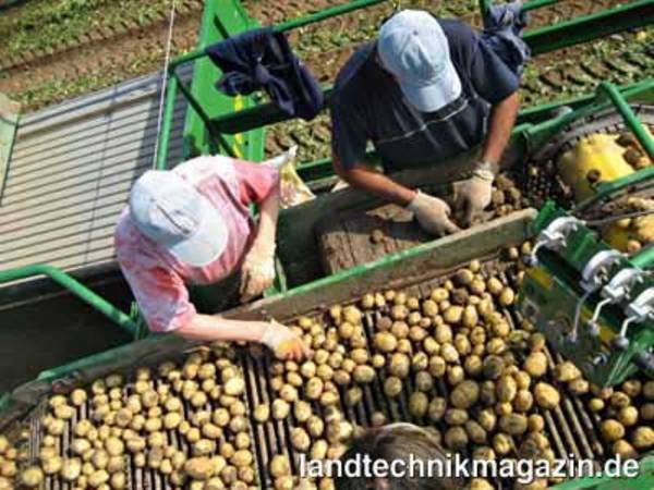 Die neuen Modelle zeichnen sich zudem durch zahlreiche Detaillösungen aus, die für einen schonenden Gutfluss sorgen. So kommt jetzt ein neuer Taschenförderer zum Einsatz, der die Kartoffel schonend und ohne jede Fallstufe auf den Verlesetisch fördert. Der Verlauf von Übergabebereichen wurde konsequent abgeflacht. Auch am Verlesetisch wurde der Materialfluss optimiert. Hier sorgt jetzt eine Gummiüberleitwalze für einen schonenden Materialfluss. Der Einsatz des Taschenförderers bringt einen um 35 cm verlängerten Verlesebereich und ermöglicht komfortables Arbeiten am waagrechten Verlesetisch.
